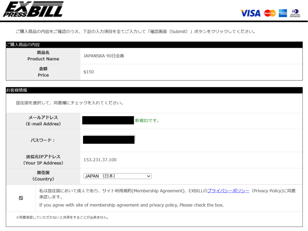 JAPANSKA(ヤパンスカ)を運営するGolden Gatewayが決済代行会社にクレジットカード決済業務を委託しているため、不正に使用されることはまずありえないといえます。