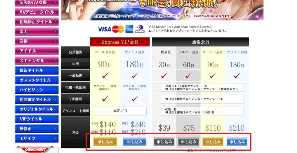 ちなみにプランですが、大きく分けてVIP会員と通常会員の2つに分かれています。